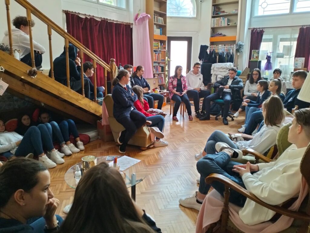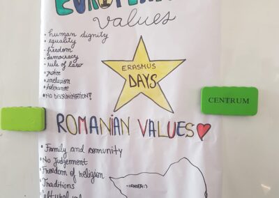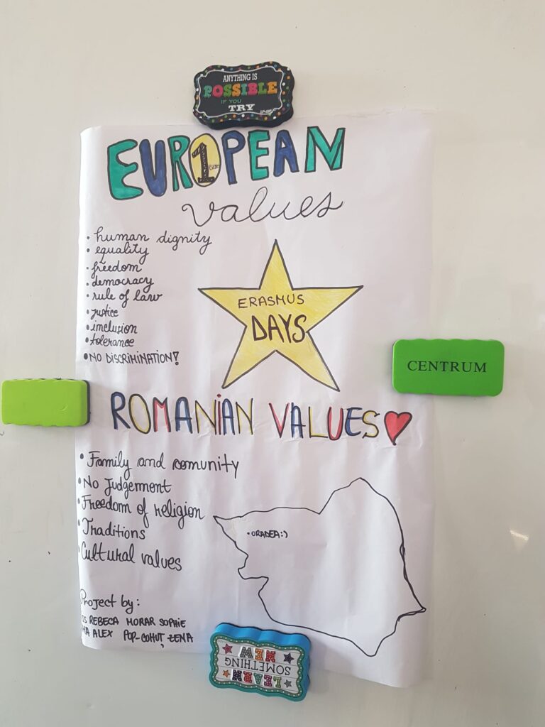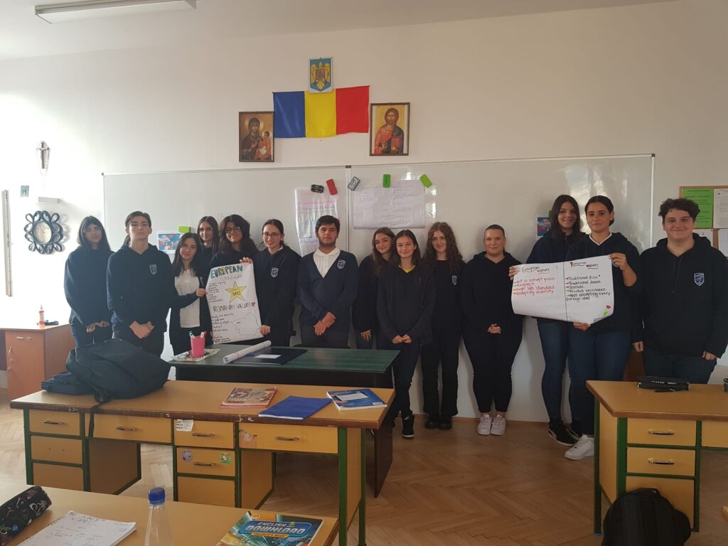 Clasele de teologie- intensiv engleză:  clasa a IX-a A, clasa a X-a A și clasa a XI-a A au marcat Zilele Erasmus 2022- sărbătorite în toată Uniunea Europeană în fiecare an, în 13,14, 15 octombrie, prin dezbateri și realizarea de postere în limba engleză privind valorile UE, ale României și viitorul elevilor în cadrul Uniunii. Elevii s-au implicat într-un mod deosebit, dovedind nu doar un nivel bun al limbii engleze, ci și solide cunoștințe de cultură generală. Rostul acestei activități a fost și de a-i stimula în dezvoltarea unui spirit critic. Cu această ocazie ne-am amintit de proiectul Erasmus+ KA101 ”Împreună pentru viitor” derulat cu un an în urmă la școala noastră când un număr de 9 profesori au participat la cursuri de formare în diferite țări ale UE, evidențiind astfel rolul educației pe tot parcursul vieții. Activitatea s-a derulat în 13 și14 octombrie 2022, în sala de clasă, dar și în minunatul spațiu oferit de biblioteca liceului. Ii mulțumim doamnei bibliotecare Carmen Popa pentru găzduire și crearea unui loc care te imbie la discuții.Nici nu am stiut cand s-a terminat ora.