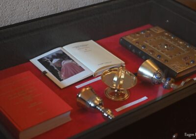 Expoziția reunește obiecte ce au aparținut episcopilor martiri, veșminte liturgice, documente rare, scrisori pastorale, fotografii de epocă, precum și publicațiile Unirea și Vestitorul.