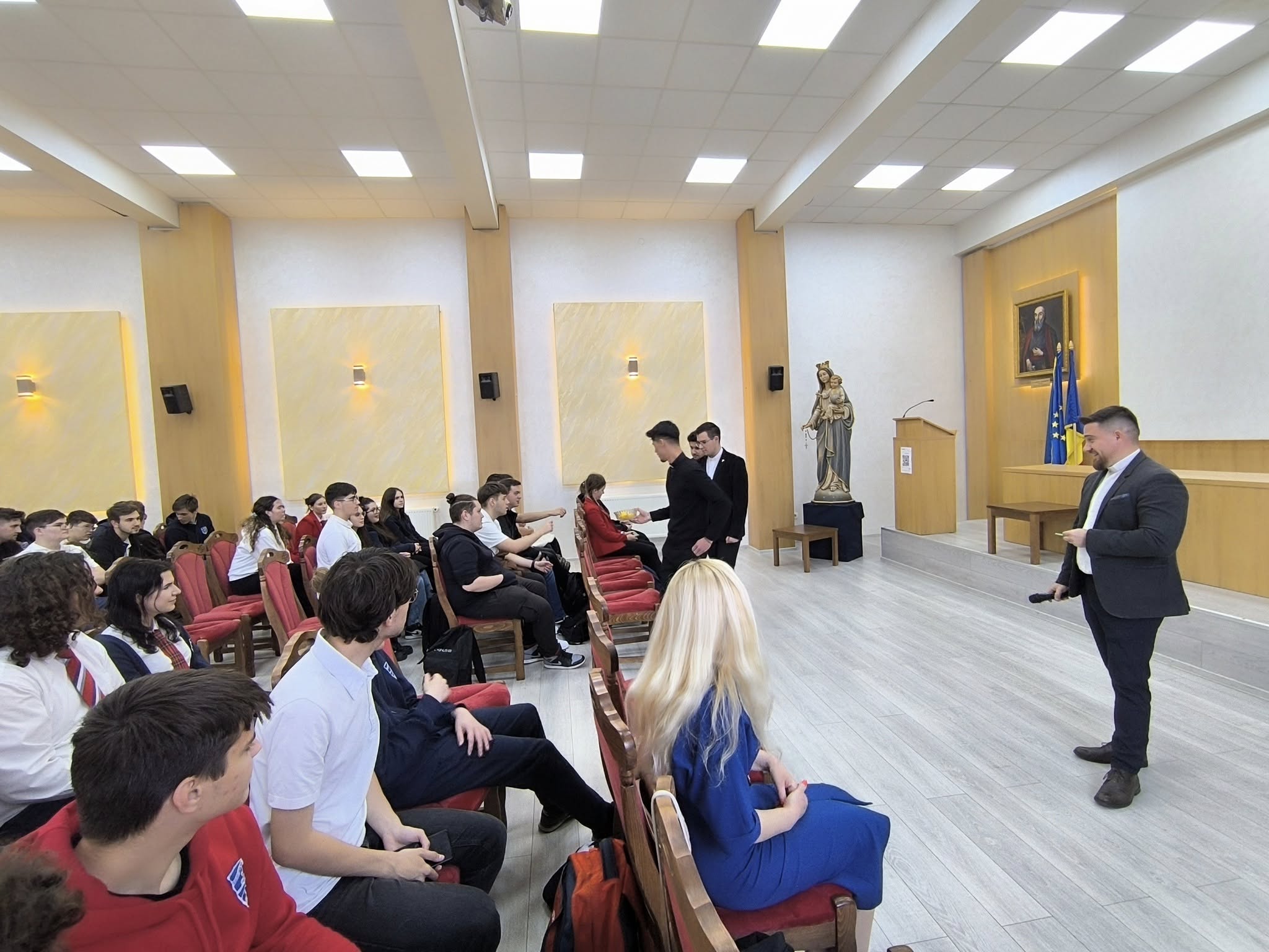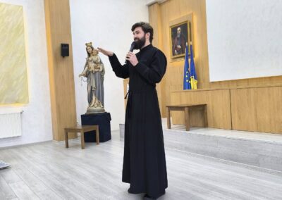 Seminaristul și studentul Dragoș Tomescu – absolventul liceului nostru – a vorbit despre povestea vocației și a prezentat povestea vieții sale de până la această vârstă, făcând referire la etapele majore, evenimentele sau persoanele prin care Dumnezeu a lucrat pentru a-l aduce pe drumul slujirii lui Dumnezeu.