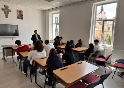 Elevii claselor a XI-a și a XII-a A și B, însoțiți de părintele Ovidiu Duma, de doamna prof. Ioana Sarca și de doamna prof. Iulia Tănescu, au avut ocazia de a pătrunde în atmosfera profundă și inspirațională a vieții academice și spirituale, prin participarea la Ziua Porților Deschise organizată de Seminarul Teologic Greco-Catolic și Facultatea de Teologie Greco-Catolică din cadrul Universității Babeș-Bolyai, în data de 30 mai 2025.