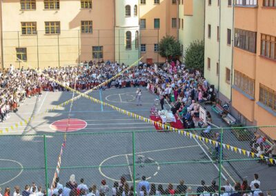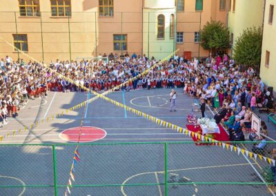 În această mare de oameni, ne unește, paradoxal spus, diversitatea bazată pe vârstă, religie, etnie, și, cu toate acestea, nu o putem numi simplu mulțime de oameni. Fiecare persoană e conectată cu o alta. Lângă noi, îl avem aproape pe cel mai bun prieten, pe dascălul nostru, pe elevul devenit profesor, pe copilul care a crescut peste noapte și a absolvit, pe fostul elev ce s-a reîntors să simtă emoția acestei zile sau pe nepoțelul care trăiește prima zi de școală. În anul 1998, treceam pragul acestei școli ca elevă, iar de atunci, aproape fără excepție, am fost prezentă la fiecare deschidere de an școlar. Chiar dacă au fost nenumărate astfel de întâlniri, mă cuprinde o mare emoție!