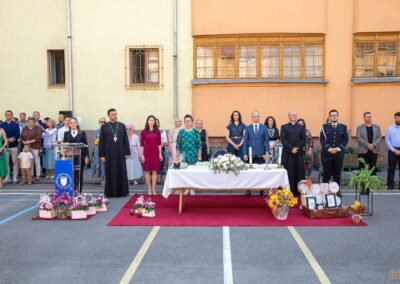 Ceremonia a continuat cu o rugăciune de început de an școlar, rostită de părintele Traian Dobrata, care a oferit tuturor binecuvântările Preasfințitului Virgil pentru un an școlar plin de reușite.