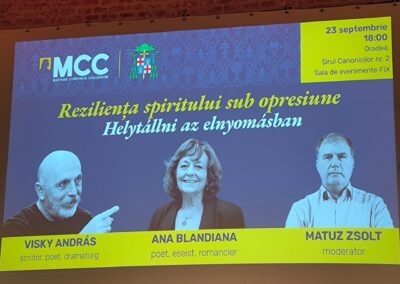 Scriitoarea Ana Blandiana a citit trei poezii din volumul personal intitulat Integrala poemelor, iar András Visky i-a făcut surpriza de a citi publicului traducerea în limba maghiară a acestora, realizată chiar de el. A fost un gest simbolic, poezia devenind punte între limbi, între oameni, între memorii. Mai mult decât o simplă lectură, momentul ne-a amintit că, într-o lume în care regimul comunist a încercat să elimine credința și individualitatea, cuvântul a devenit cel mai bun adăpost.