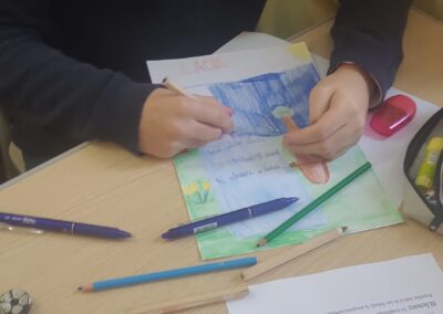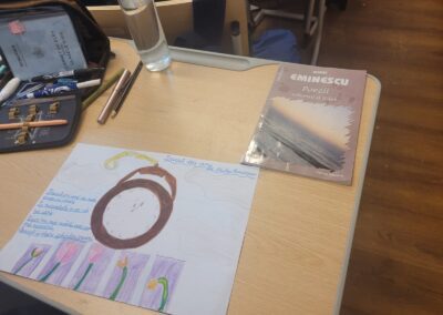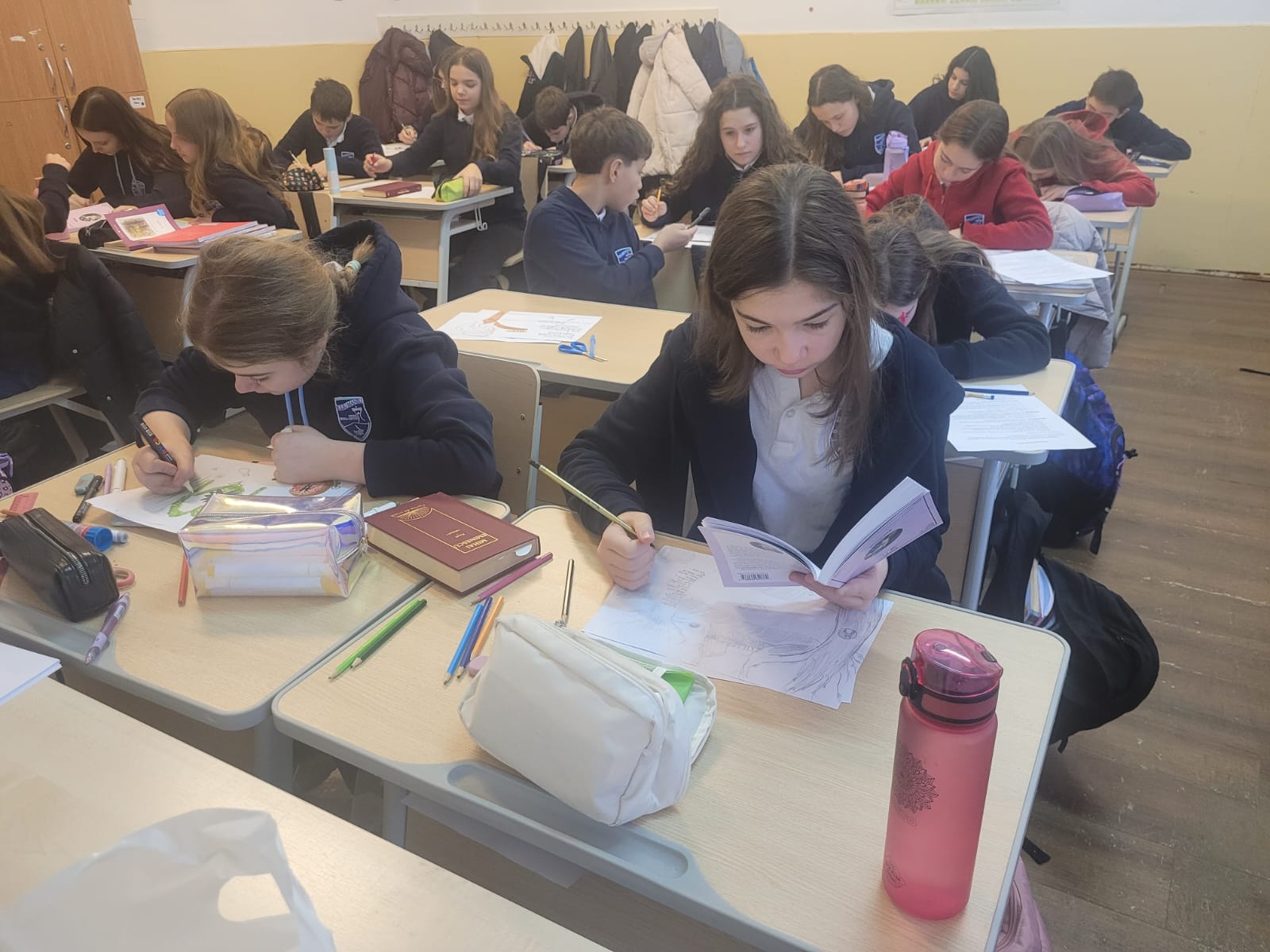 Clasa a VI-a B și-a arătat talentul într-o activitate interdisciplinară de pictopoezie, intitulată „Sub semnul lui Eminescu”. Elevii coordonați de dna prof. Emilia Haș au îmbinat poezia cu arta vizuală, realizând pictopoezii inspirate din versuri, dezvoltând sensibilitatea estetică și creativitatea, imaginația, expresivitatea și gustul artistic elevilor.