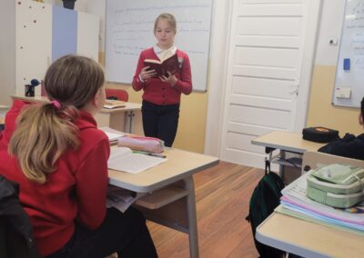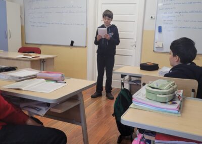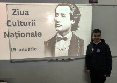Clasa a V-a B și dna prof. Emilia Haș au organizat un moment magic pentru ,,Eminescu și valorile fundamentale ale culturii române”. A fost o lecție tematică despre Mihai Eminescu, evidențiind valorile fundamentale ale culturii române, identitatea națională, limba, tradiția și spiritul critic, prin discuții, exemple literare și reflecție.