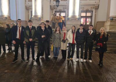 Ziua Culturii Naționale s-a încheiat în mod festiv la Teatrul Regina Maria. Un grup de 40 de elevi din clasele a V-a A, a IX-a B, a X-a B, a XI-a B și doamnele profesoare Emilia Haș și Ioana Sarca au vizitat expoziția de costume populare și carte veche și au participat la un spectacol extraordinar. Vocea actorului Marius Bodochi și acordurile cvartetului de coarde al Filarmonicii de Stat Oradea ne-au reamintit că limba română este, într-adevăr, inima culturii românești.
