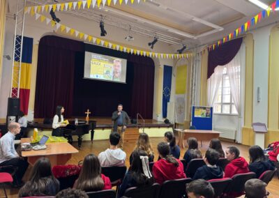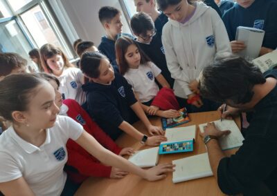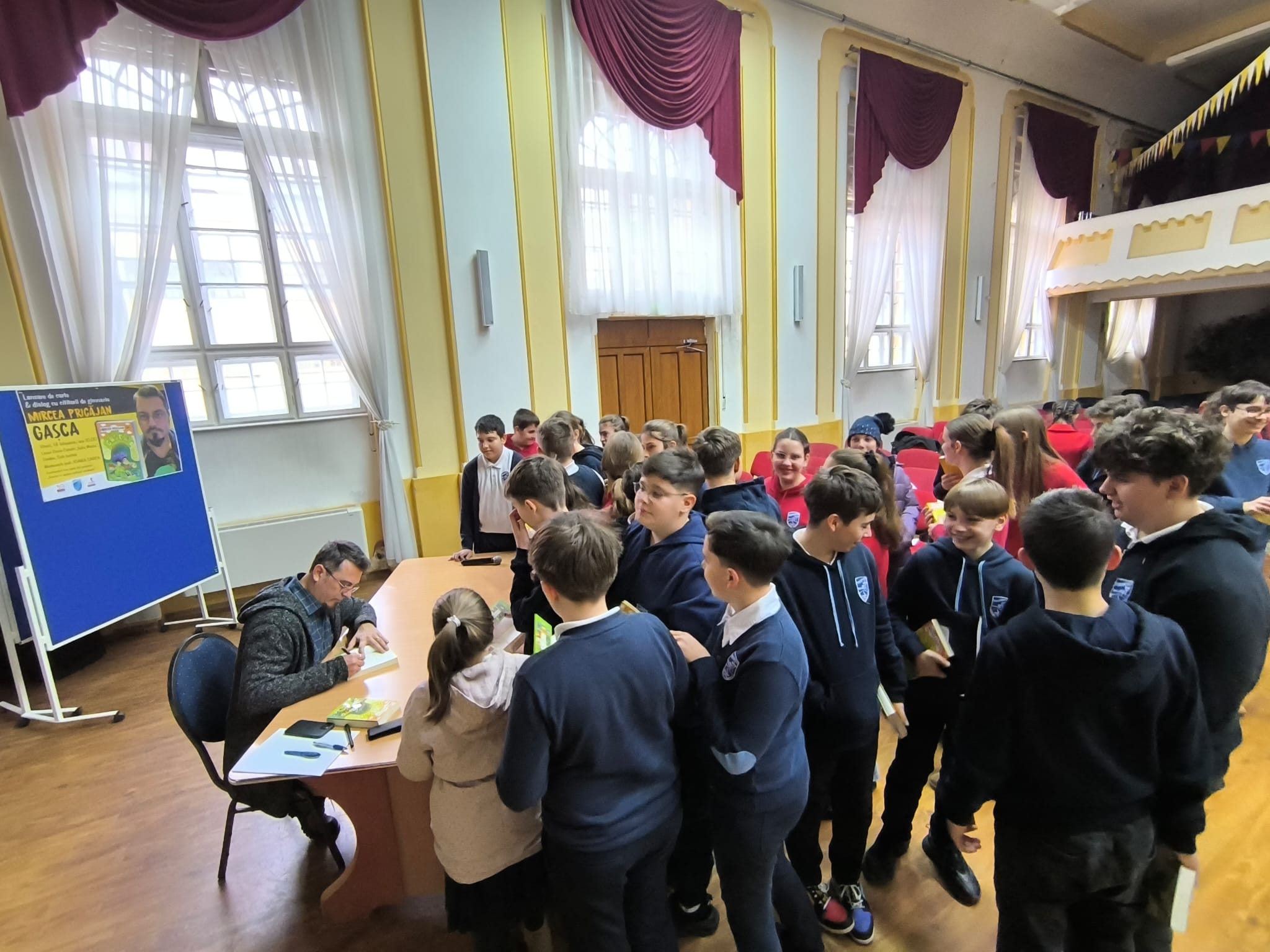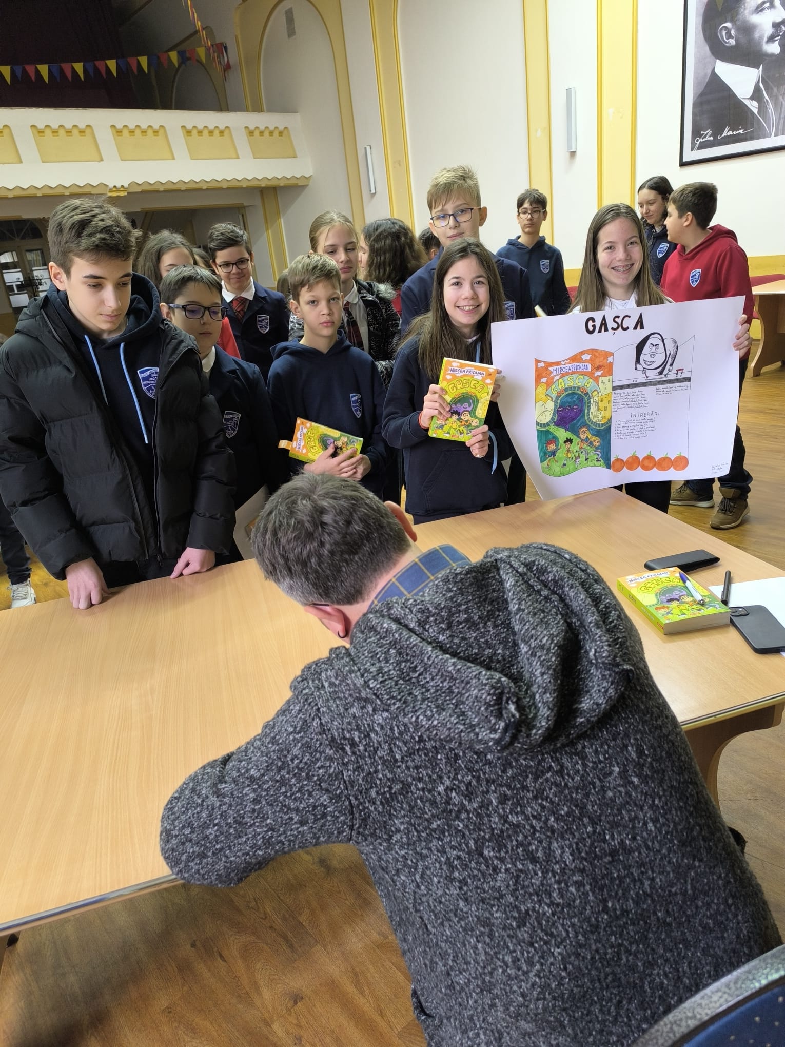 De asemenea, îi transmitem calde mulțumiri domnului scriitor Mircea Pricăjan pentru prezența sa, cu atât mai valoroasă cu cât programul domniei sale este extrem de încărcat! Faptul că își rezervă timp an de an pentru a se întâlni cu elevii noștri, pentru a-i asculta și pentru a le răspunde la întrebări, reprezintă un adevărat privilegiu și un model de respect față de noile generații de cititori.